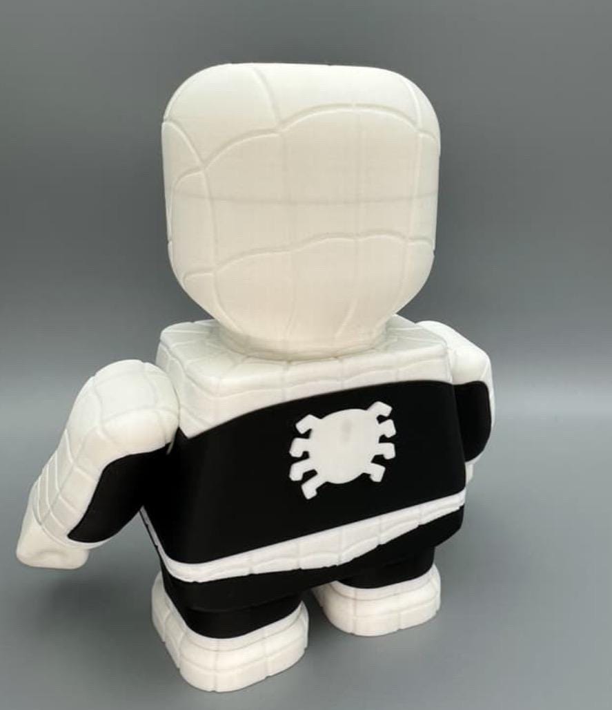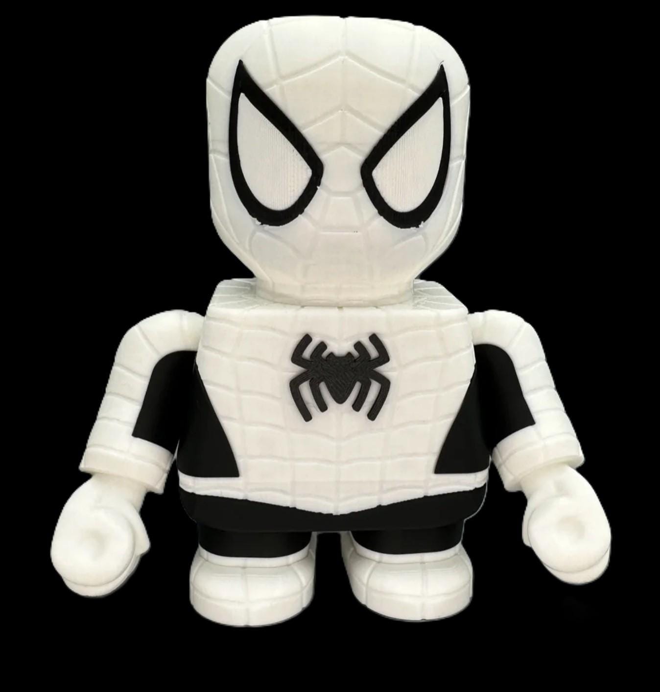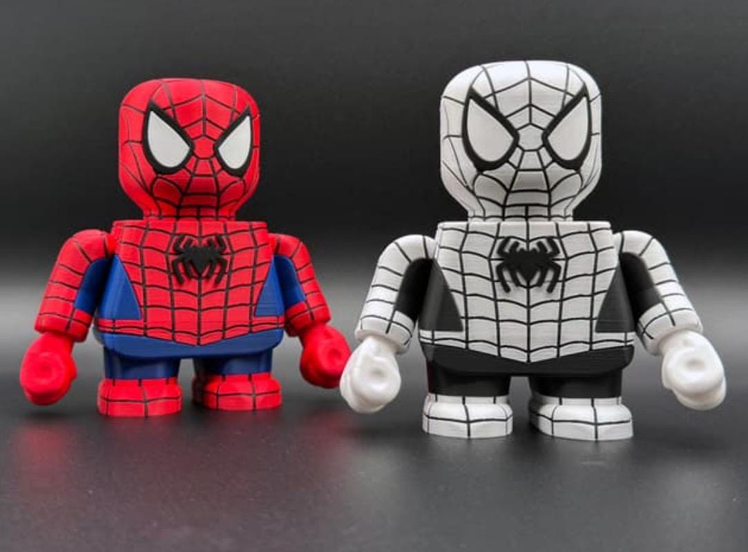 3D printed Spider-Man Figure. The head swivels from side to side and the arms/hands move as well, in order to be played with or posed for display.
