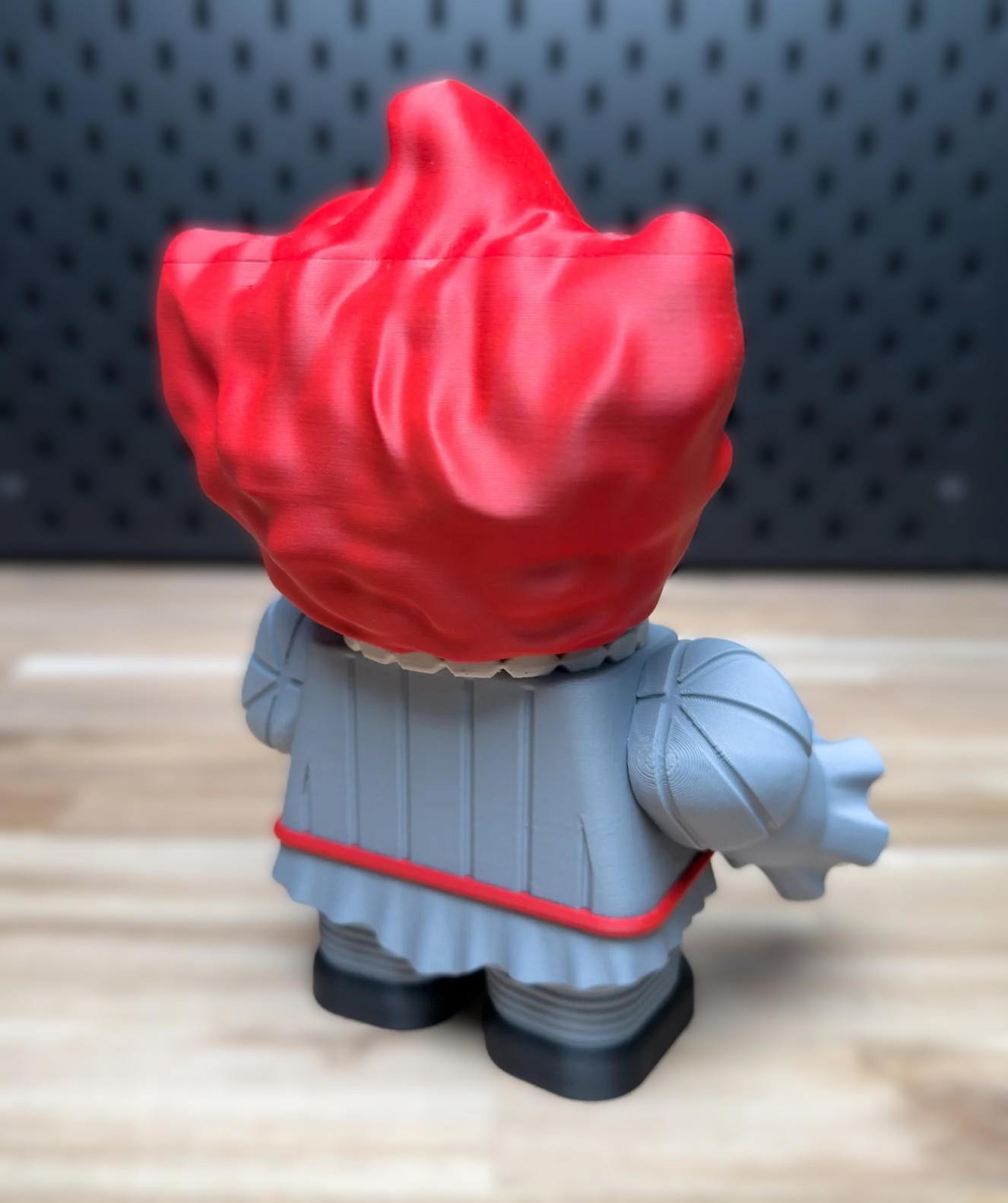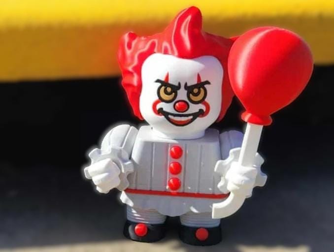 3D printed Penny Wise. The head swivels from side to side and the arms/hands move. IT can be posed for a spooky display or given as a gift! The balloon can also be taken out of his hand!